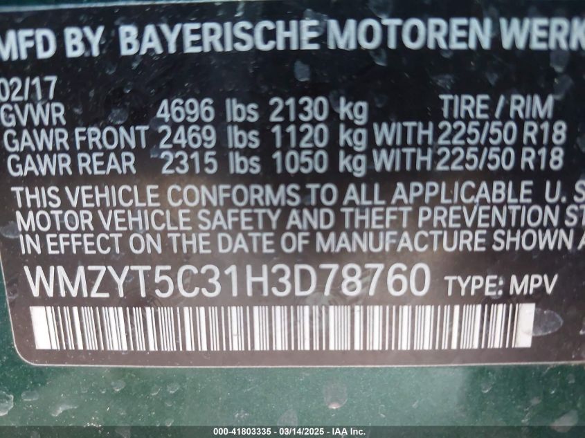 Color GreenCylinders 4Drive Full driveVIN WMZYT5C31H3******State Run & Drive VerifiedDamage Front or back AutoRIA