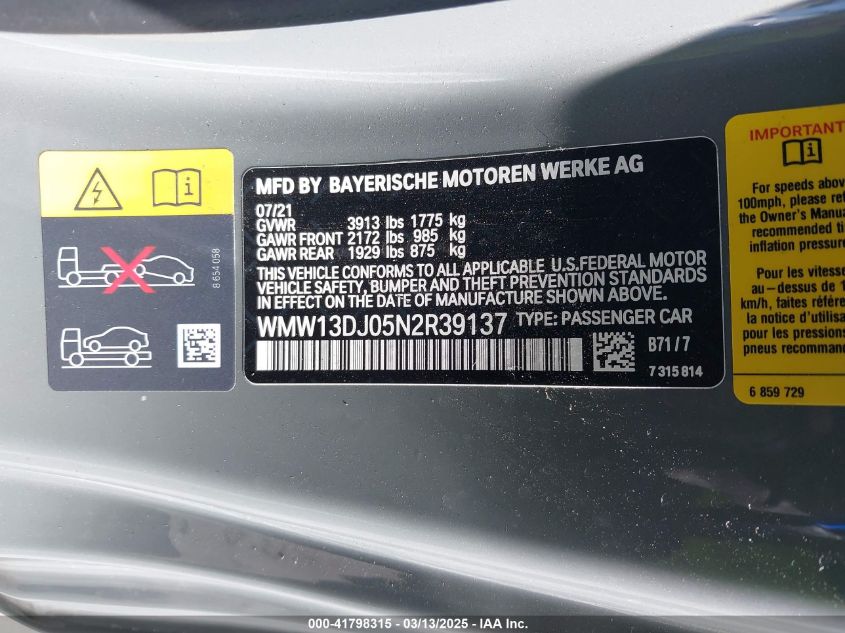 2022 MINI HARDTOP 2022 Electric, 0.0, Front wheel drive, VIN - WMW13DJ05N2****** from the USA