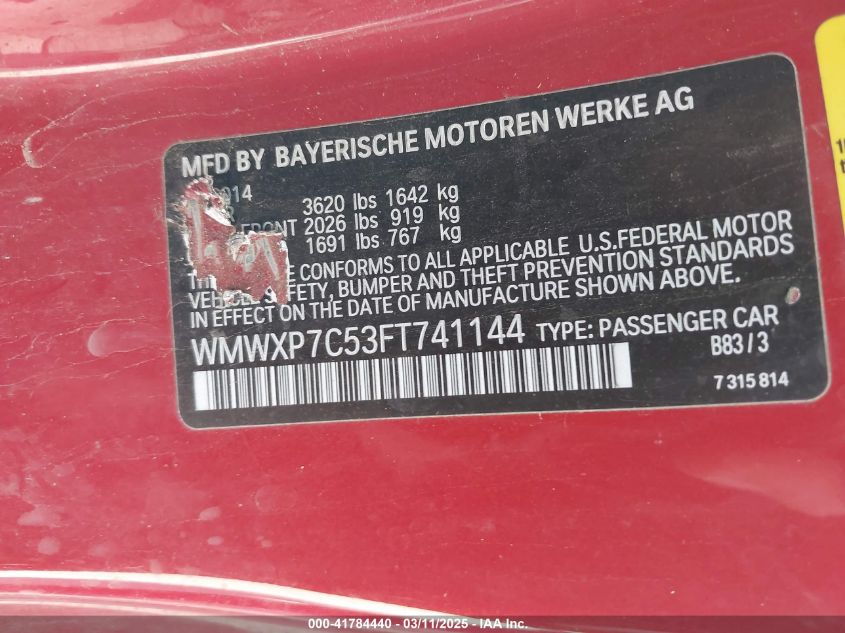 Color RedCylinders 4Drive Front wheel driveVIN WMWXP7C53FT******State Run & Drive VerifiedDamage InsignificantAuction date 2025-03-26