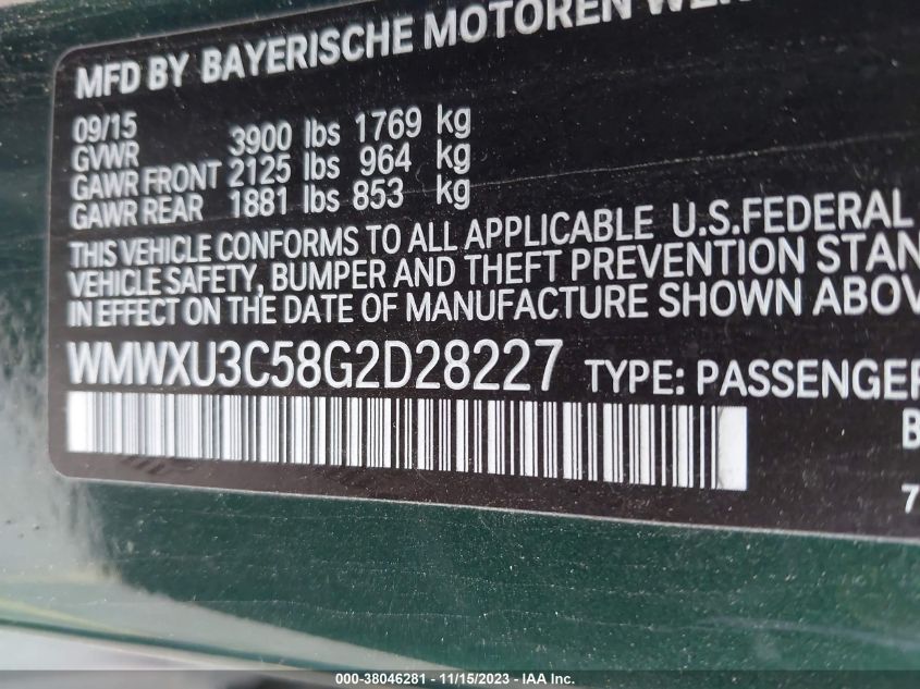 Color GreenCylinders 4Drive Front wheel driveVIN WMWXU3C58G2******State Run & Drive VerifiedDamage Front or backAuction date 2025-03-20