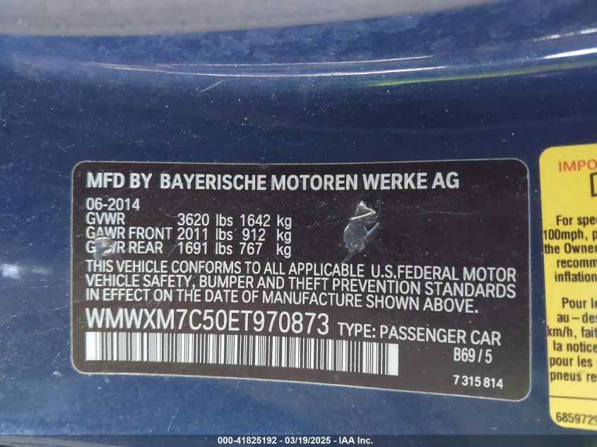 Color BlueCylinders 4Drive Front wheel driveVIN WMWXM7C50ET******State Run & Drive VerifiedDamage Front or back