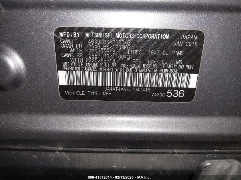 2018 MITSUBISHI ECLIPSE CROSS 2018 Gasoline, 1.5, Full drive, VIN - JA4AT4AA7JZ****** from the USA