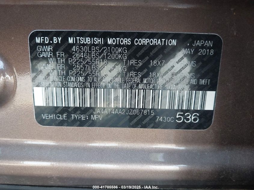 2018 MITSUBISHI ECLIPSE CROSS 2018 Gasoline, 1.5, Full drive, VIN - JA4AT4AA2JZ****** from the USA