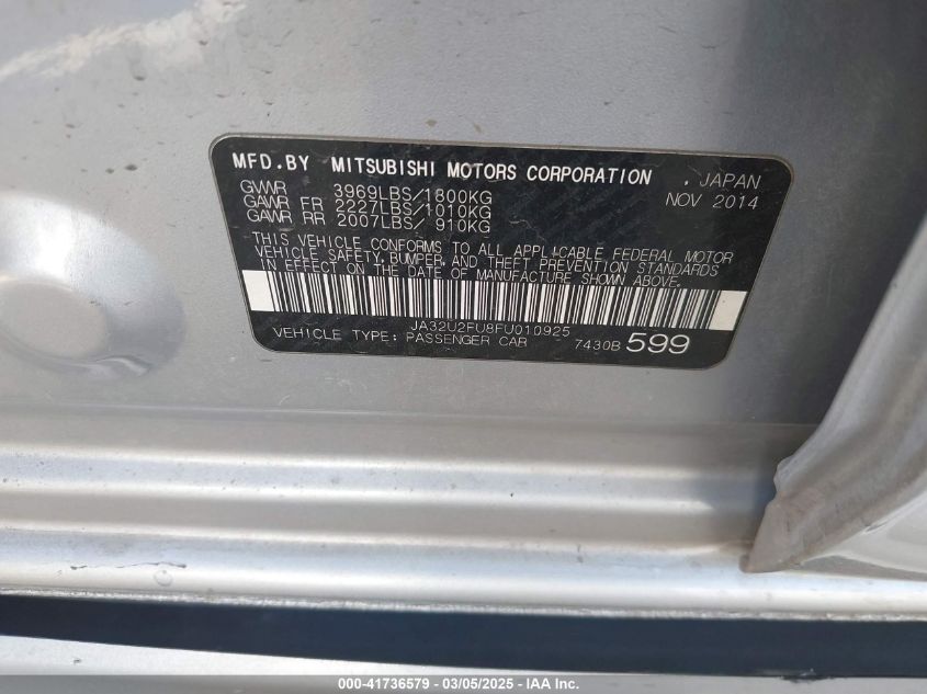 2015 MITSUBISHI LANCER 2015 Gasoline, 2.0, Front wheel drive, VIN - JA32U2FU8FU****** from the USA