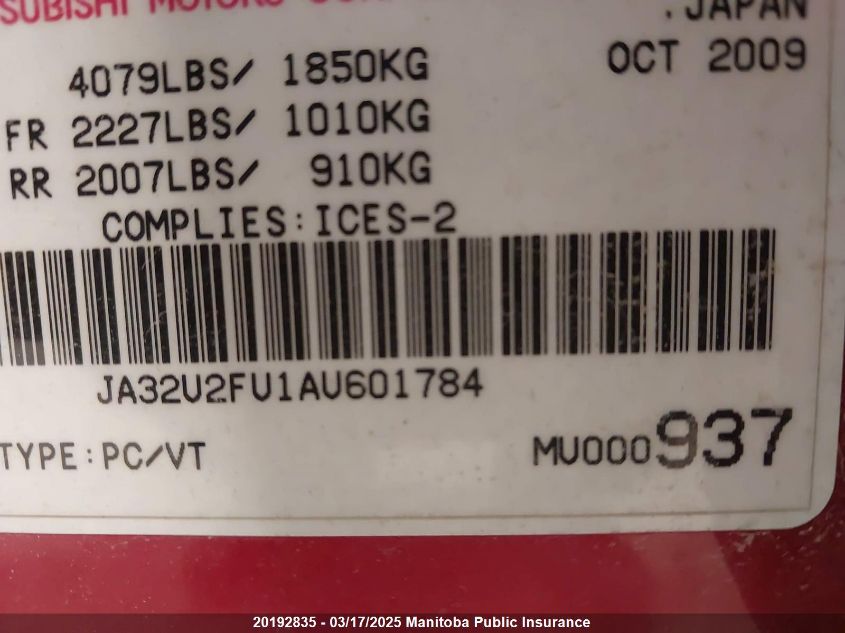 2010 MITSUBISHI LANCER 2010 Gasoline, , Unknown, VIN - JA32U2FU1AU****** from the USA