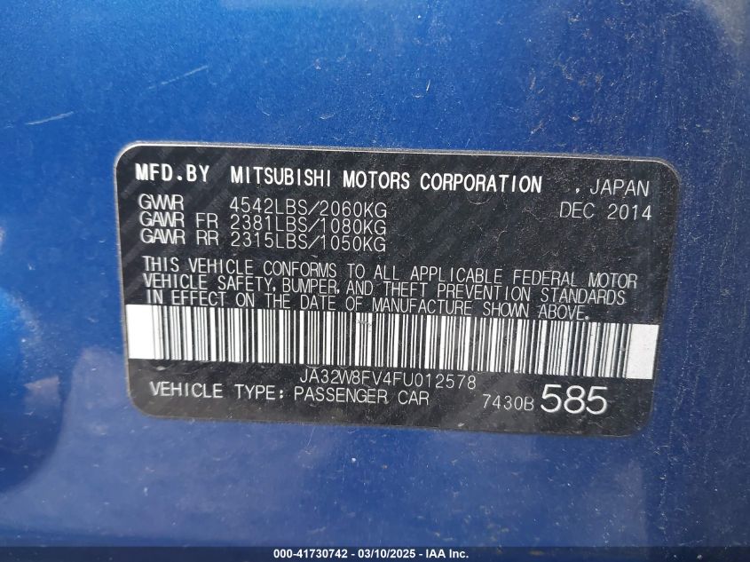 2015 MITSUBISHI LANCER EVOLUTION 2015 Gasoline, 2.0, Full drive, VIN - JA32W8FV4FU****** from the USA
