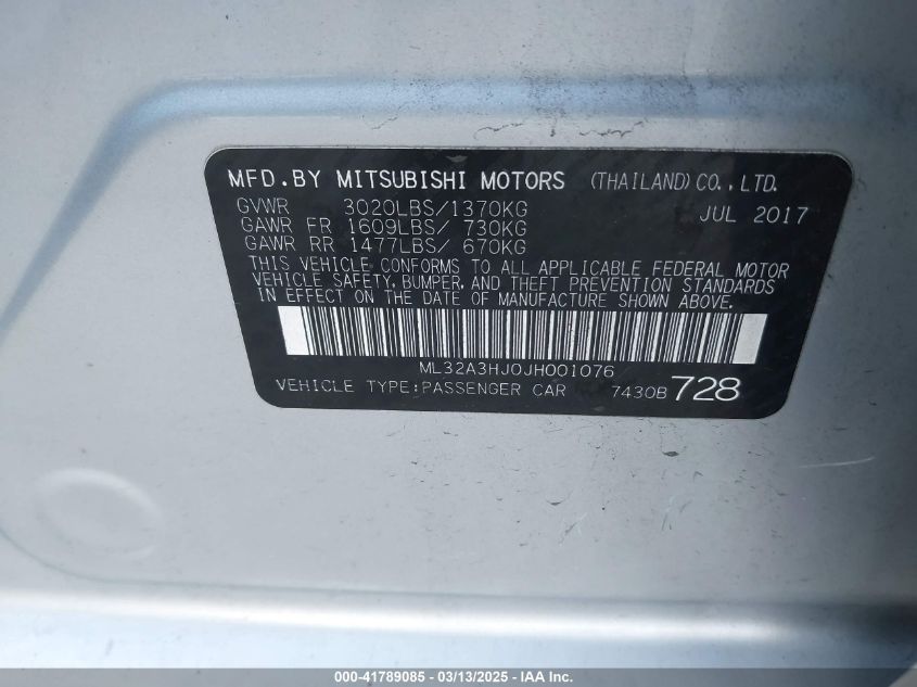 2018 MITSUBISHI MIRAGE 2018 Gasoline, 1.2, Front wheel drive, VIN - ML32A3HJ0JH****** from the USA