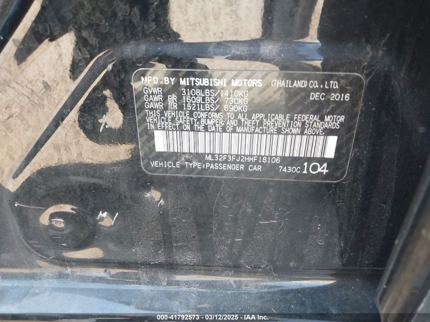 2017 MITSUBISHI MIRAGE 2017 Gasoline, 1.2, Front wheel drive, VIN - ML32F3FJ2HH****** from the USA
