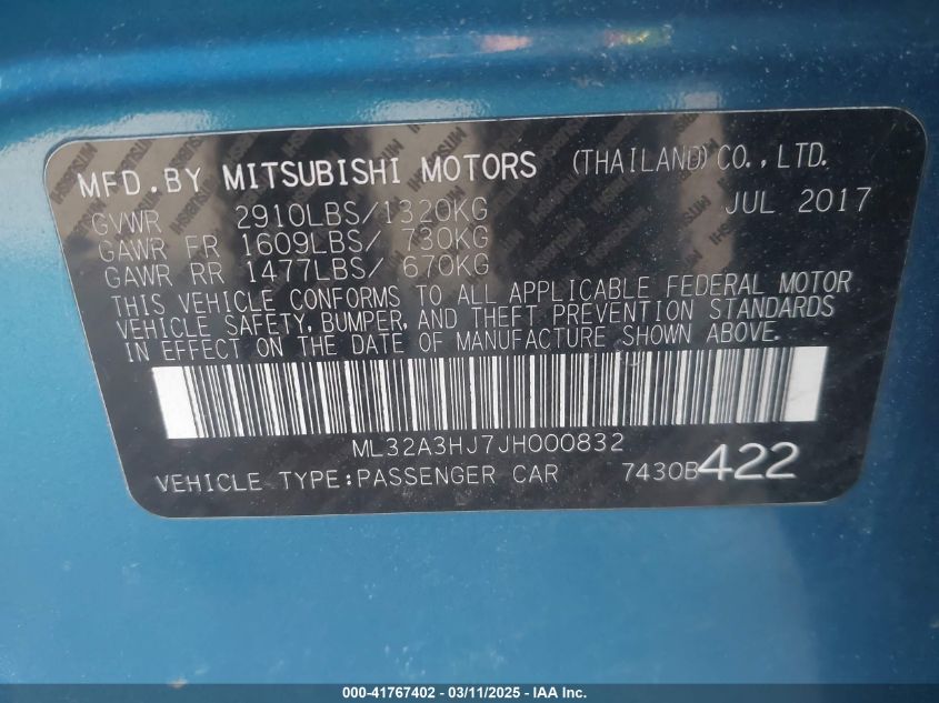 2018 MITSUBISHI MIRAGE 2018 Gasoline, 1.2, Front wheel drive, VIN - ML32A3HJ7JH****** from the USA
