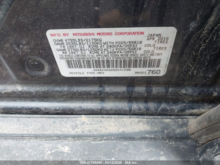 2016 MITSUBISHI OUTLANDER 2016 Gasoline, 2.4, Full drive, VIN - JA4AZ3A32GZ****** from the USA
