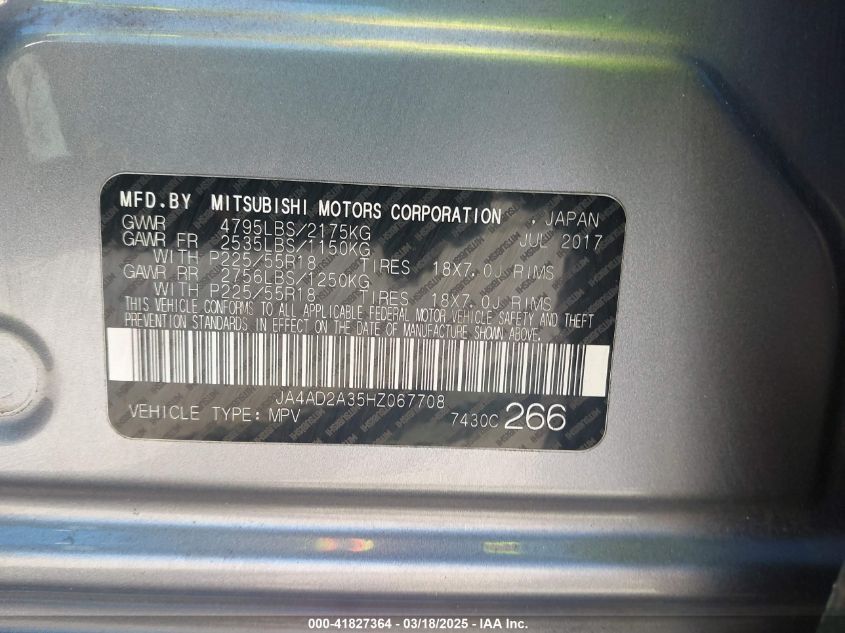 2017 MITSUBISHI OUTLANDER 2017 Gasoline, 2.4, Front wheel drive, VIN - JA4AD2A35HZ****** from the USA