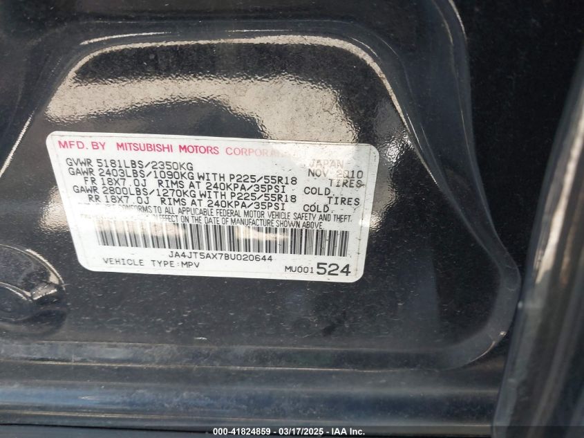 Color BlackCylinders 6Drive Full driveVIN JA4JT5AX7BU******State Run & Drive VerifiedDamage Front or backAuction date 2025-03-24 AutoRIA