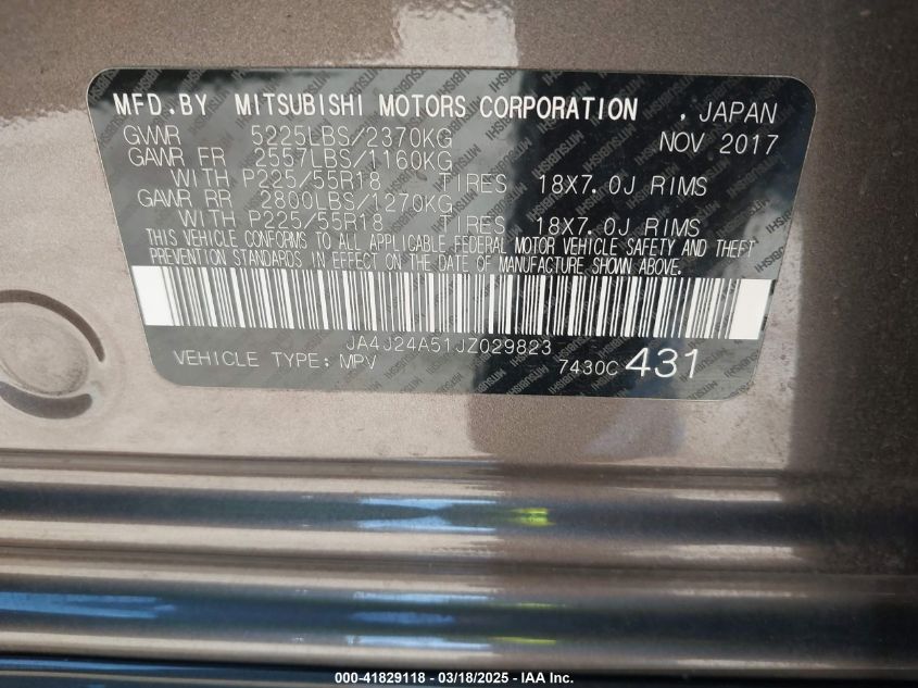 2018 MITSUBISHI OUTLANDER 2018 Hybrid, 2.0, Full drive, VIN - JA4J24A51JZ****** from the USA