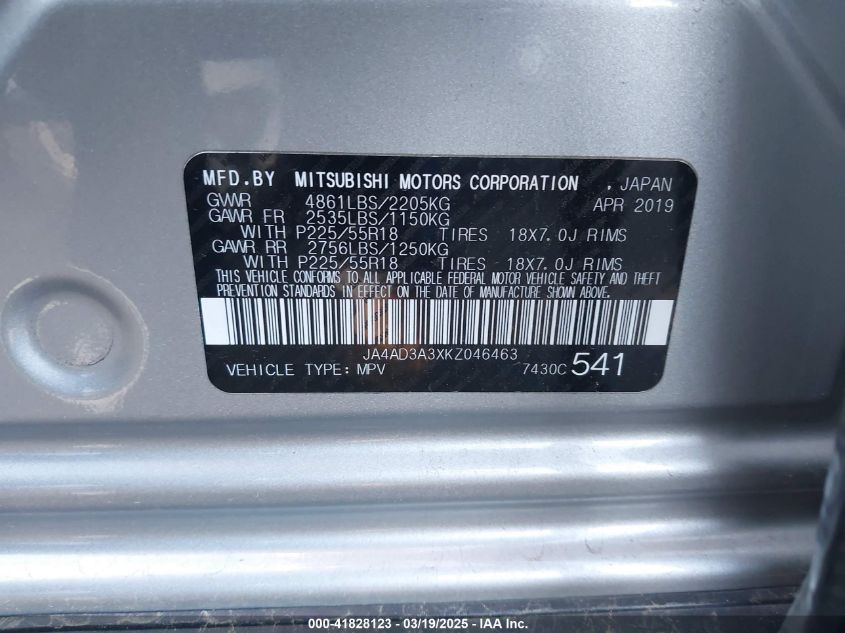 2019 MITSUBISHI OUTLANDER 2019 Gasoline, 2.4, Front wheel drive, VIN - JA4AD3A3XKZ****** from the USA