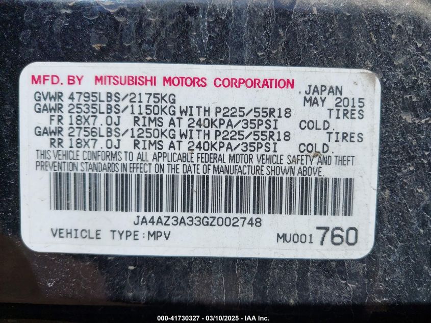 2016 MITSUBISHI OUTLANDER 2016 Gasoline, 2.4, Full drive, VIN - JA4AZ3A33GZ****** from the USA