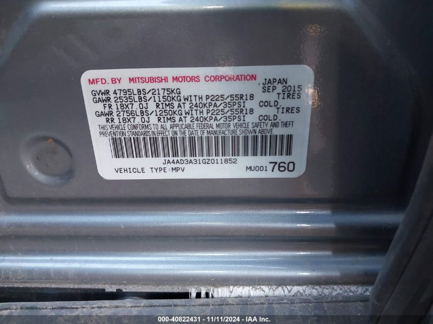 2016 MITSUBISHI OUTLANDER 2016 Gasoline, 2.4, Front wheel drive, VIN - JA4AD3A31GZ****** from the USA