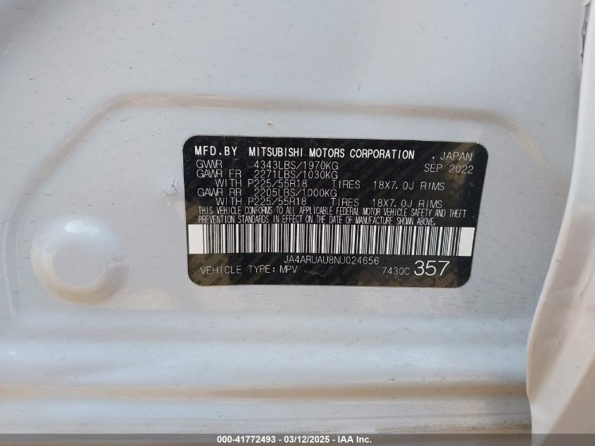 Color WhiteCylinders 4Drive Full driveVIN JA4ARUAU8NU******State Run & Drive VerifiedDamage All over the car AutoRIA