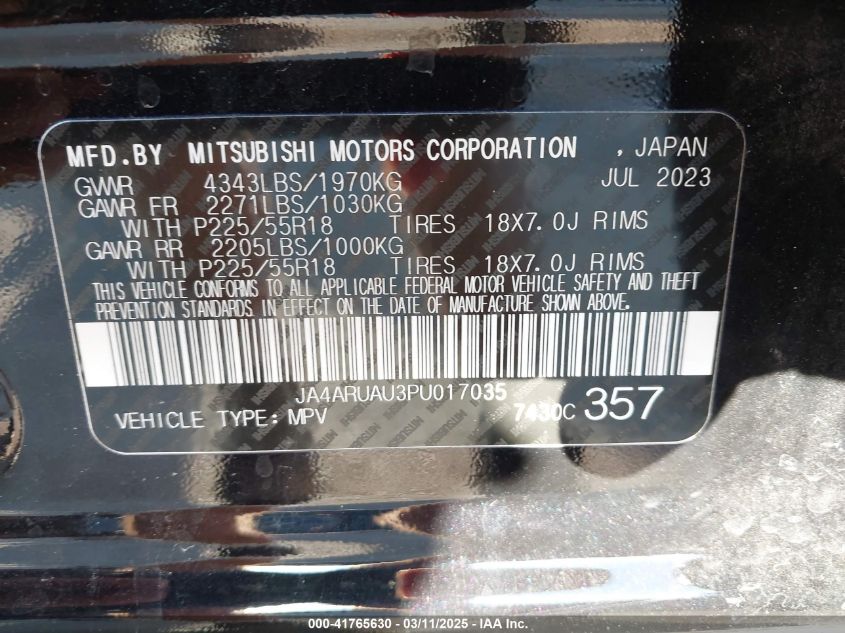 Color BlackCylinders 4Drive Full driveVIN JA4ARUAU3PU******State Run & Drive VerifiedDamage Front or back