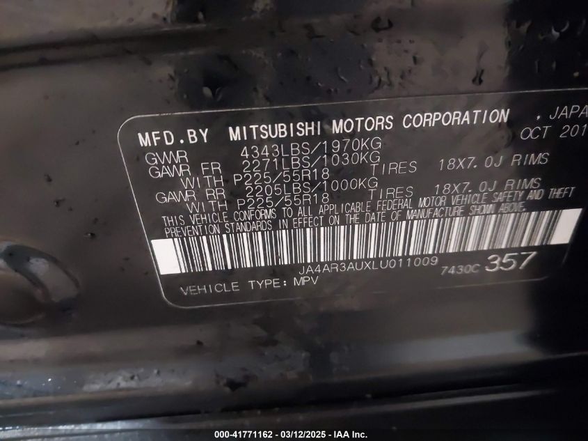 Color BlackCylinders 4Drive Full driveVIN JA4AR3AUXLU******State Run & Drive VerifiedDamage Front or back AutoRIA