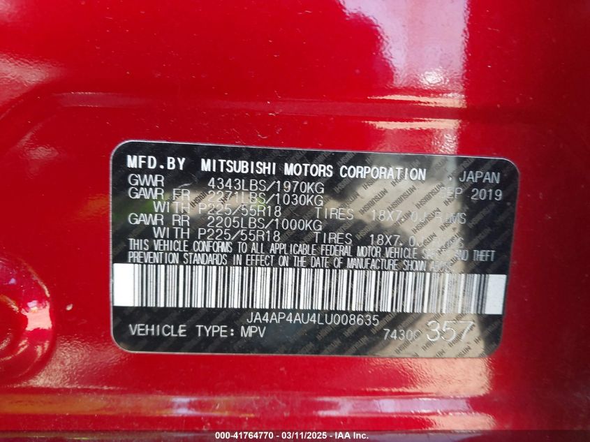 Color RedCylinders 4Drive Front wheel driveVIN JA4AP4AU4LU******State Run & Drive VerifiedDamage Back AutoRIA