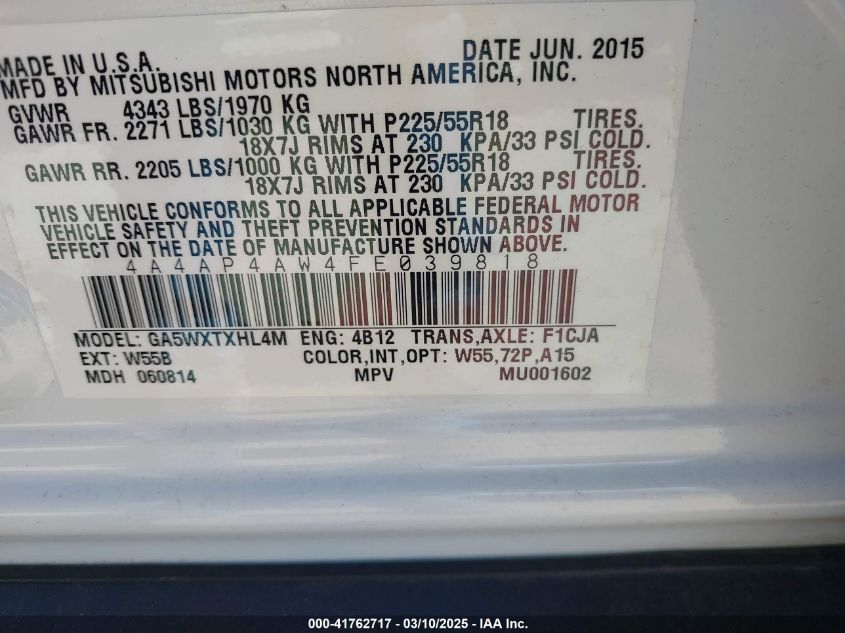 2015 MITSUBISHI OUTLANDER SPORT 2015 Gasoline, 2.4, Front wheel drive, VIN - 4A4AP4AW4FE****** from the USA