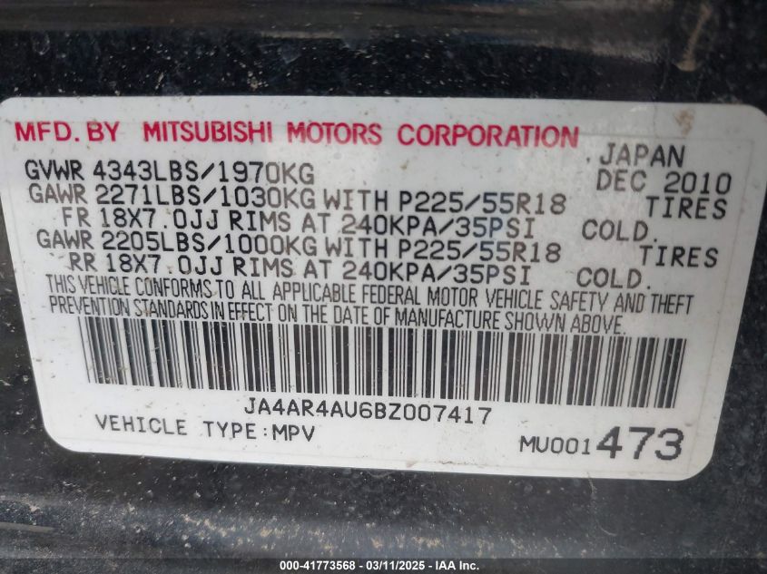 2011 MITSUBISHI OUTLANDER SPORT 2011 Gasoline, 2.0, Full drive, VIN - JA4AR4AU6BZ****** from the USA