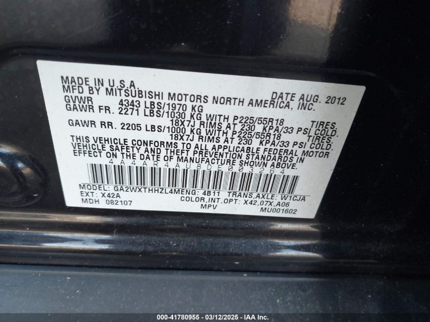 2013 MITSUBISHI OUTLANDER SPORT 2013 Gasoline, 2.0, Full drive, VIN - 4A4AR4AU8DE****** from the USA