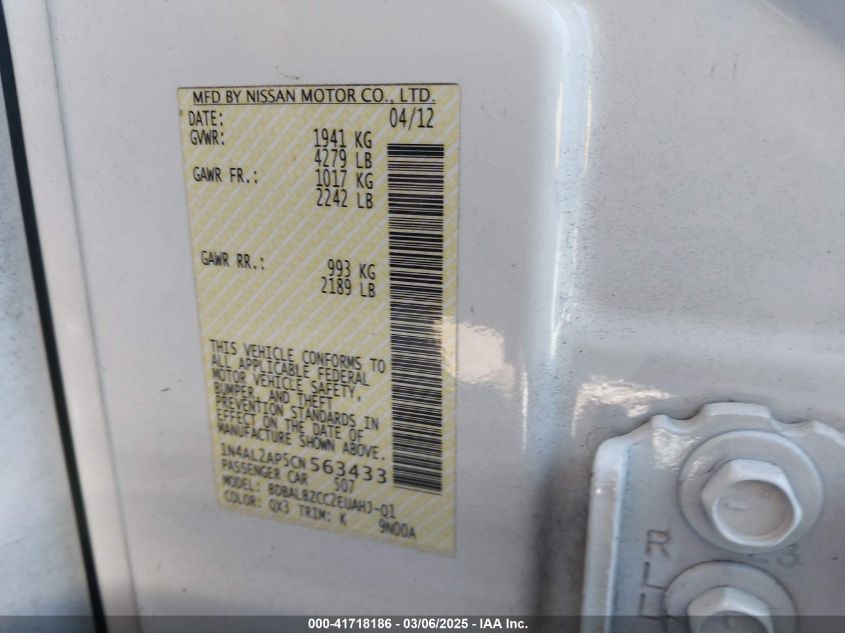 Color WhiteCylinders 4Drive Front wheel driveVIN 1N4AL2AP5CN******State Run & Drive VerifiedDamage Front or back AutoRIA