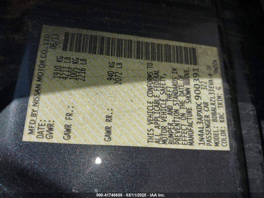 2013 NISSAN ALTIMA 2013 Gasoline, 2.5, Front wheel drive, VIN - 1N4AL3APXDC****** from the USA