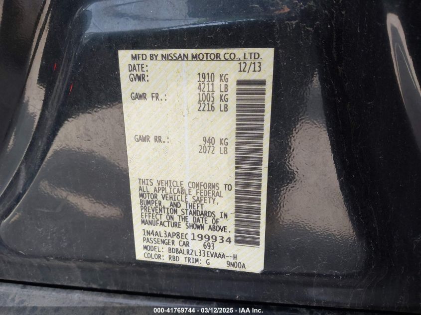 2014 NISSAN ALTIMA 2014 Gasoline, 2.5, Front wheel drive, VIN - 1N4AL3AP8EC****** from the USA