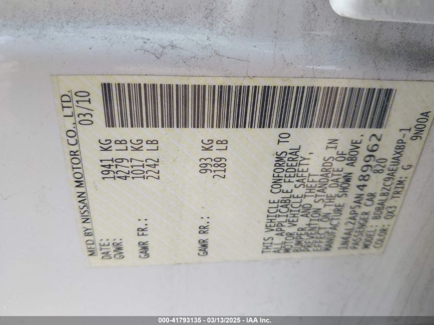 Color WhiteCylinders 4Drive Front wheel driveVIN 1N4AL2AP5AN******State Run & Drive VerifiedDamage Rear leftAuction date 2025-03-25 AutoRIA