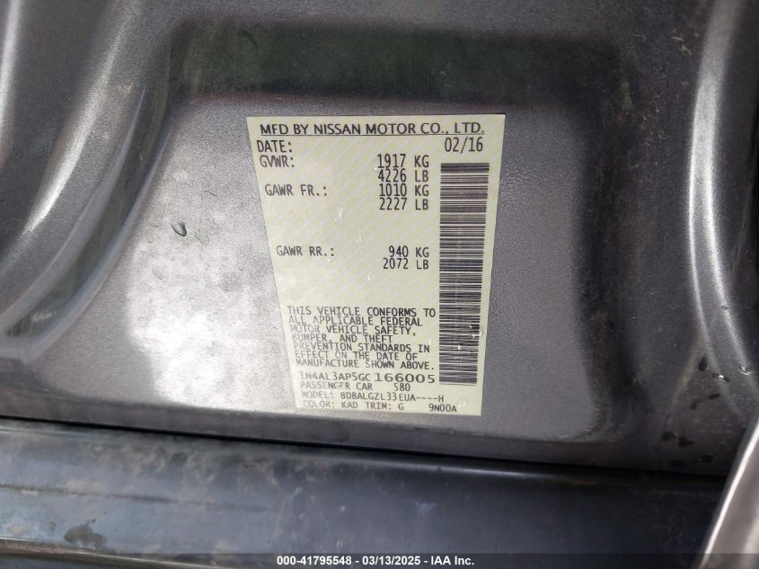 Color GrayCylinders 4Drive Front wheel driveVIN 1N4AL3AP5GC******State Run & Drive VerifiedDamage Back AutoRIA