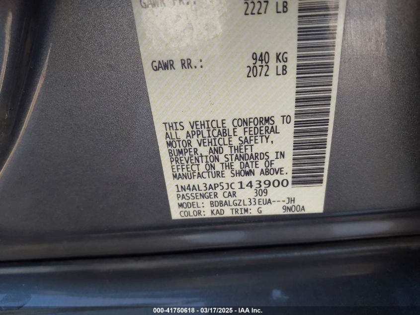 2018 NISSAN ALTIMA 2018 Gasoline, 2.5, Front wheel drive, VIN - 1N4AL3AP5JC****** from the USA