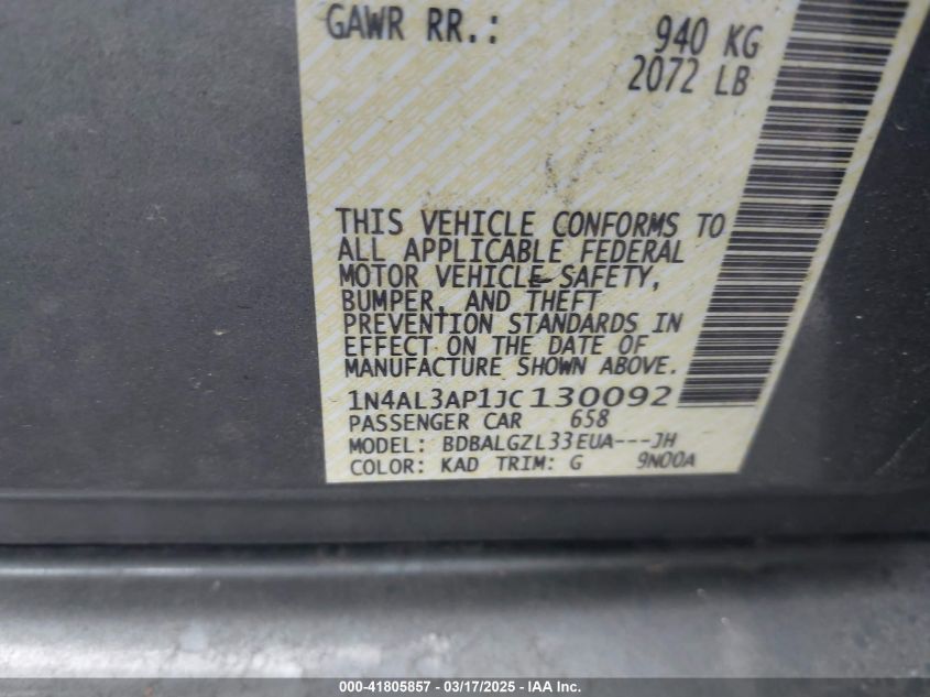 Color GrayCylinders 4Drive Front wheel driveVIN 1N4AL3AP1JC******State Run & Drive VerifiedDamage Back AutoRIA