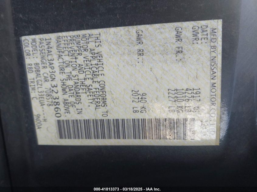 2016 NISSAN ALTIMA 2016 Gasoline, 2.5, Front wheel drive, VIN - 1N4AL3AP3GN****** from the USA