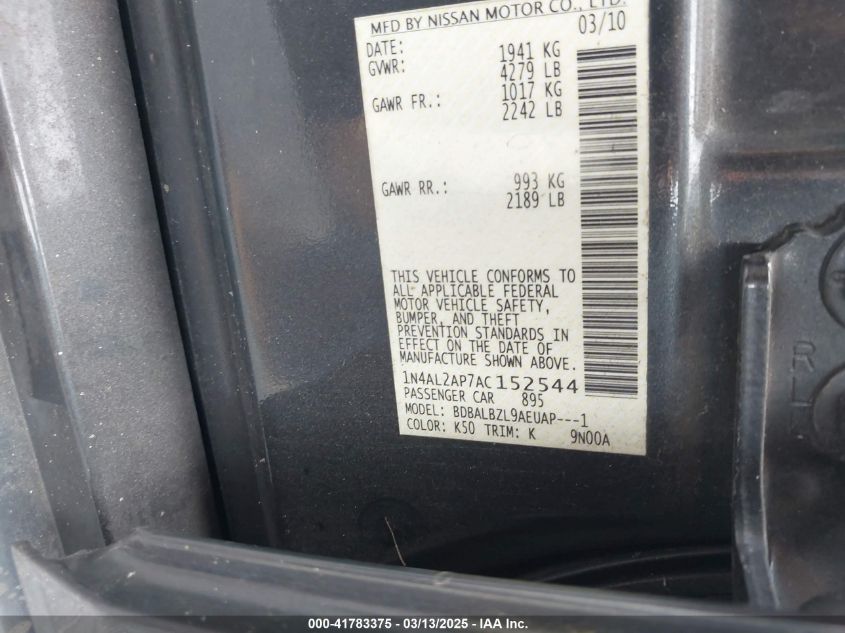 2010 NISSAN ALTIMA 2010 Gasoline, 2.5, Front wheel drive, VIN - 1N4AL2AP7AC****** from the USA