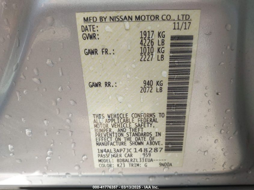 2018 NISSAN ALTIMA 2018 Gasoline, 2.5, Front wheel drive, VIN - 1N4AL3AP7JC****** from the USA