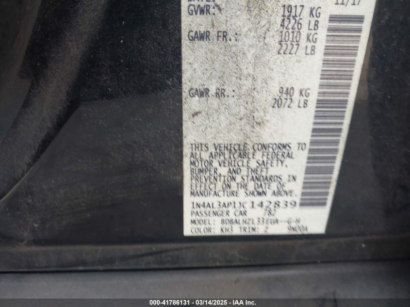 Color GrayCylinders 4Drive Front wheel driveVIN 1N4AL3AP1JC******State Run & Drive VerifiedDamage Back AutoRIA