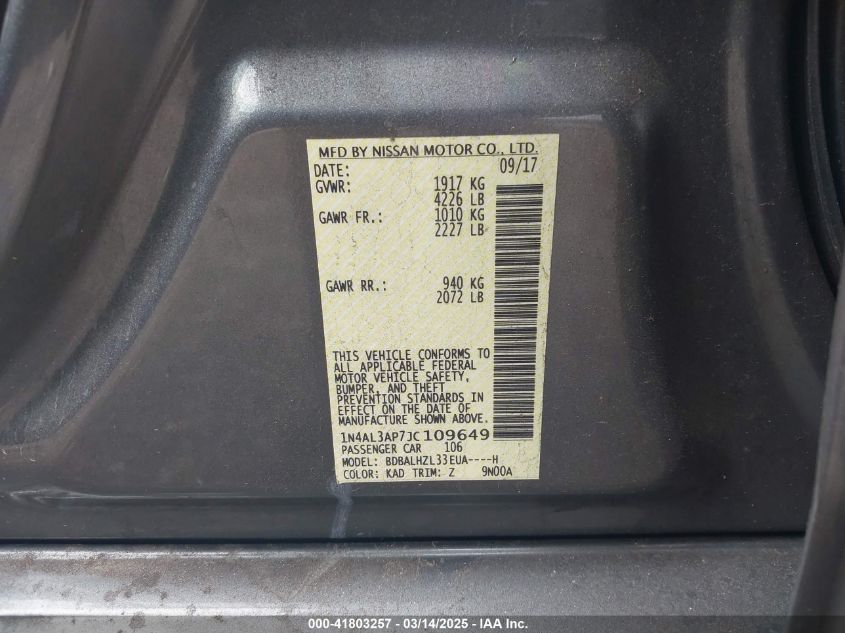 2018 NISSAN ALTIMA 2018 Gasoline, 2.5, Front wheel drive, VIN - 1N4AL3AP7JC****** from the USA
