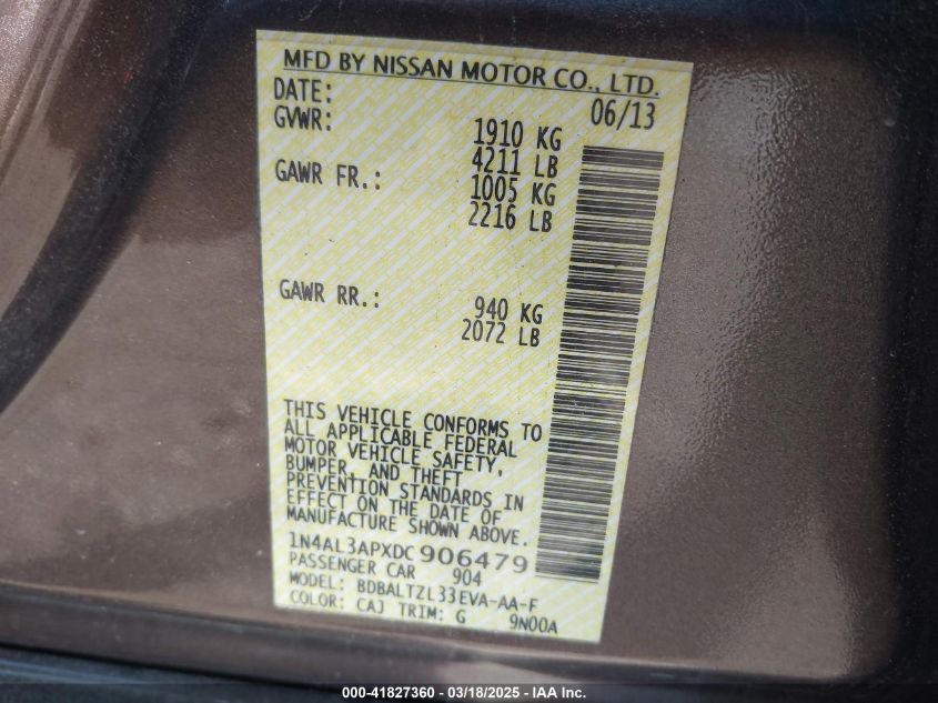 2013 NISSAN ALTIMA 2013 Gasoline, 2.5, Front wheel drive, VIN - 1N4AL3APXDC****** from the USA