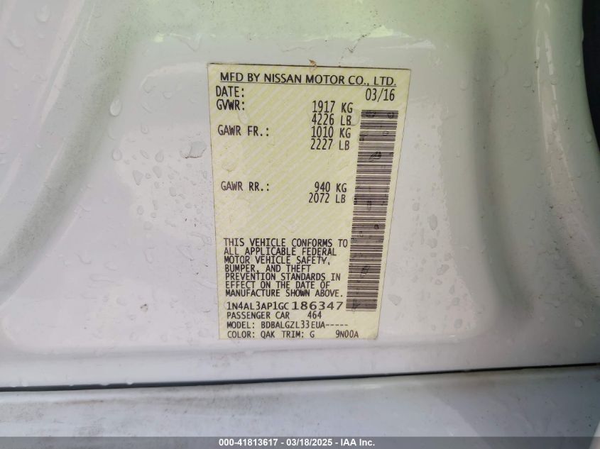 Color WhiteCylinders 4Drive Front wheel driveVIN 1N4AL3AP1GC******State Run & Drive VerifiedDamage Front or back AutoRIA