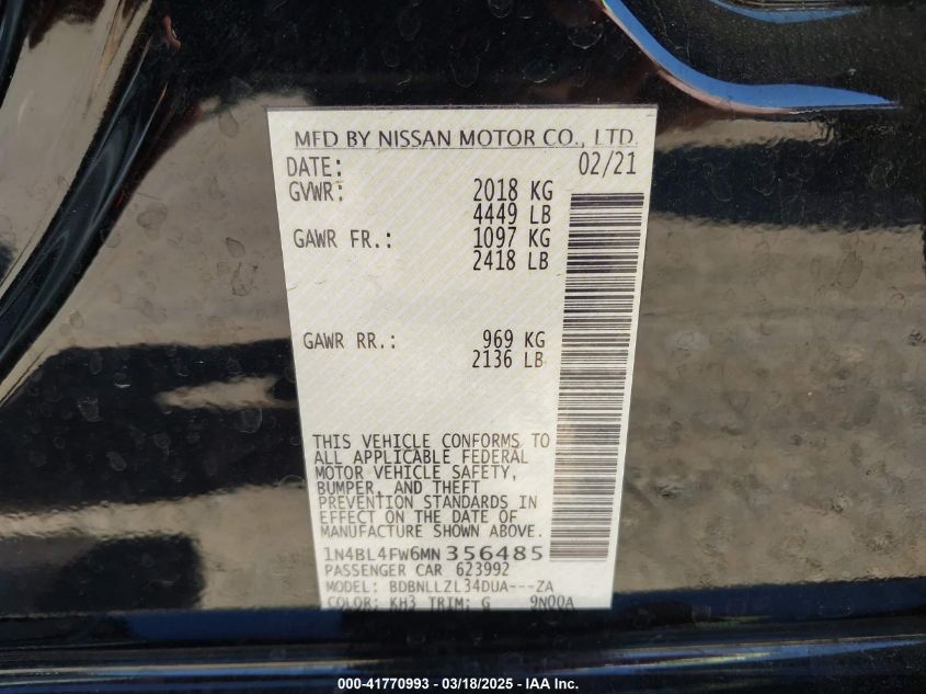 2021 NISSAN ALTIMA 2021 Gasoline, 2.5, Full drive, VIN - 1N4BL4FW6MN****** from the USA