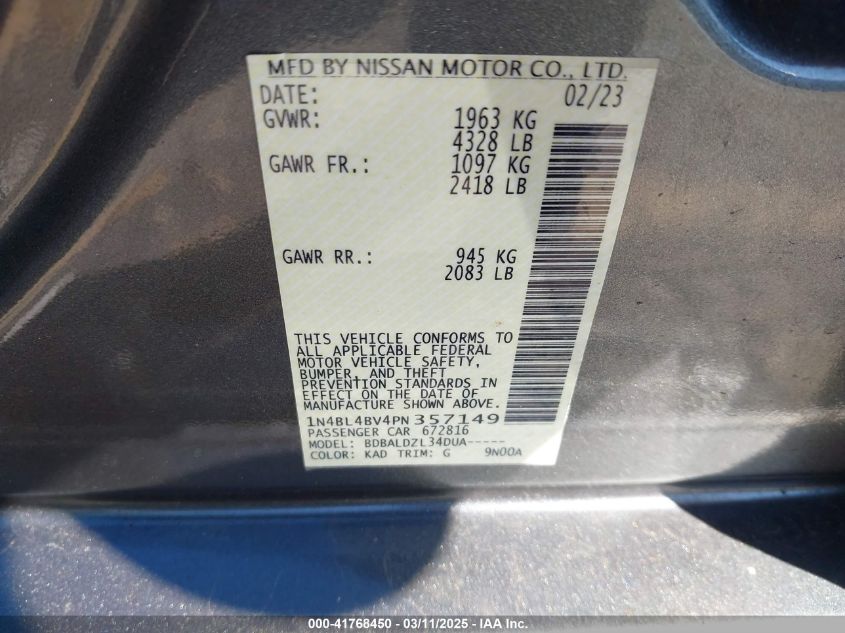 Color GrayCylinders 4Drive Front wheel driveVIN 1N4BL4BV4PN******State Run & Drive VerifiedDamage Front or back