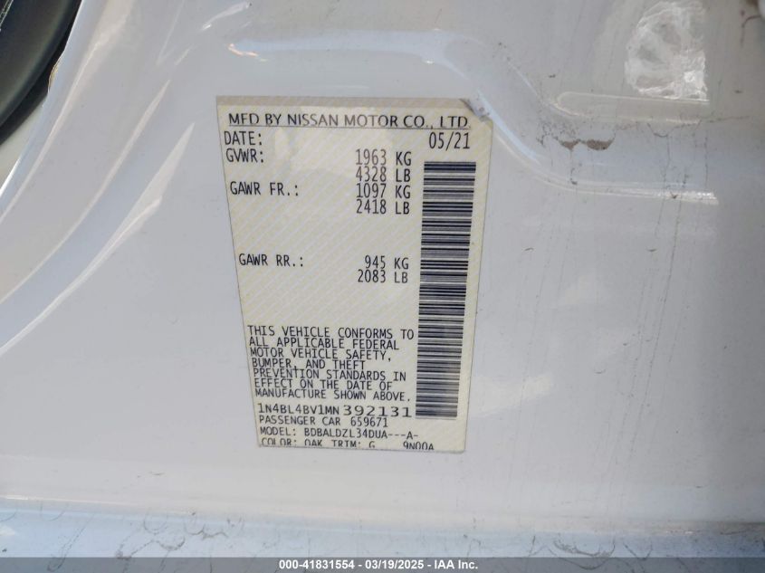 2021 NISSAN ALTIMA 2021 Gasoline, 2.5, Front wheel drive, VIN - 1N4BL4BV1MN****** from the USA