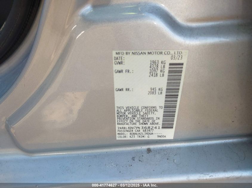2023 NISSAN ALTIMA 2023 Gasoline, 2.5, Front wheel drive, VIN - 1N4BL4DV7PN****** from the USA