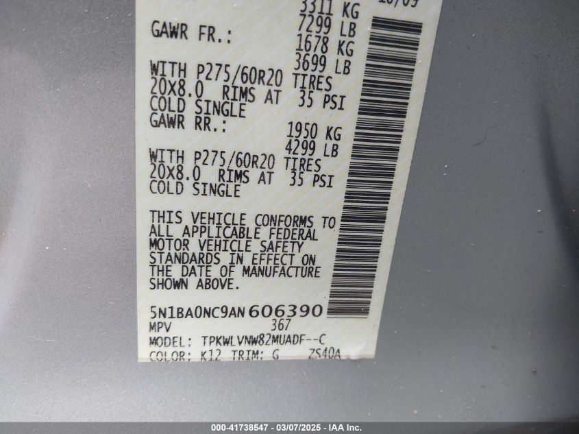 Color SilverCylinders 8Drive Full driveVIN 5N1BA0NC9AN******State Run & Drive VerifiedDamage Right sideAuction date 2025-03-20
