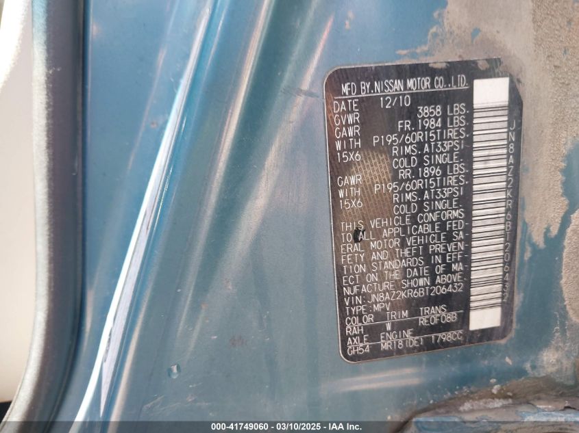 Color BlueCylinders 4Drive Front wheel driveVIN JN8AZ2KR6BT******State Run & Drive VerifiedDamage Insignificant AutoRIA