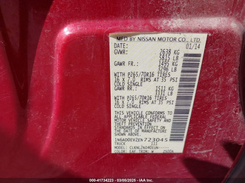 2014 NISSAN FRONTIER 2014 Gasoline, 4.0, Full drive, VIN - 1N6AD0EV2EN****** from the USA