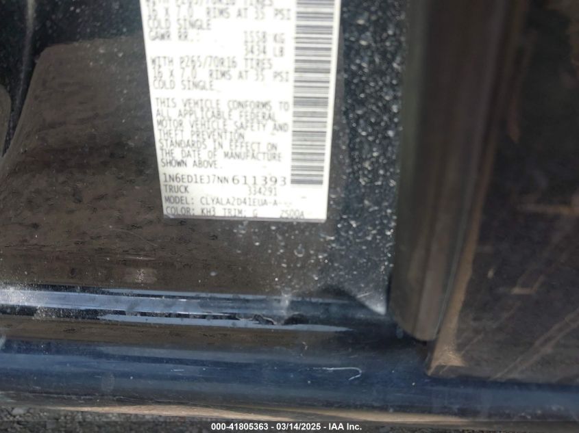 Color BlackCylinders 6Drive UnknownVIN 1N6ED1EJ7NN******State Run & Drive VerifiedDamage Front or back AutoRIA