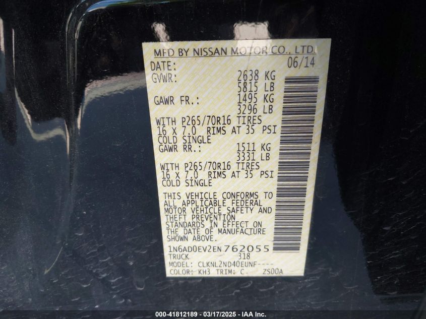 2014 NISSAN FRONTIER 2014 Gasoline, 4.0, Full drive, VIN - 1N6AD0EV2EN****** from the USA